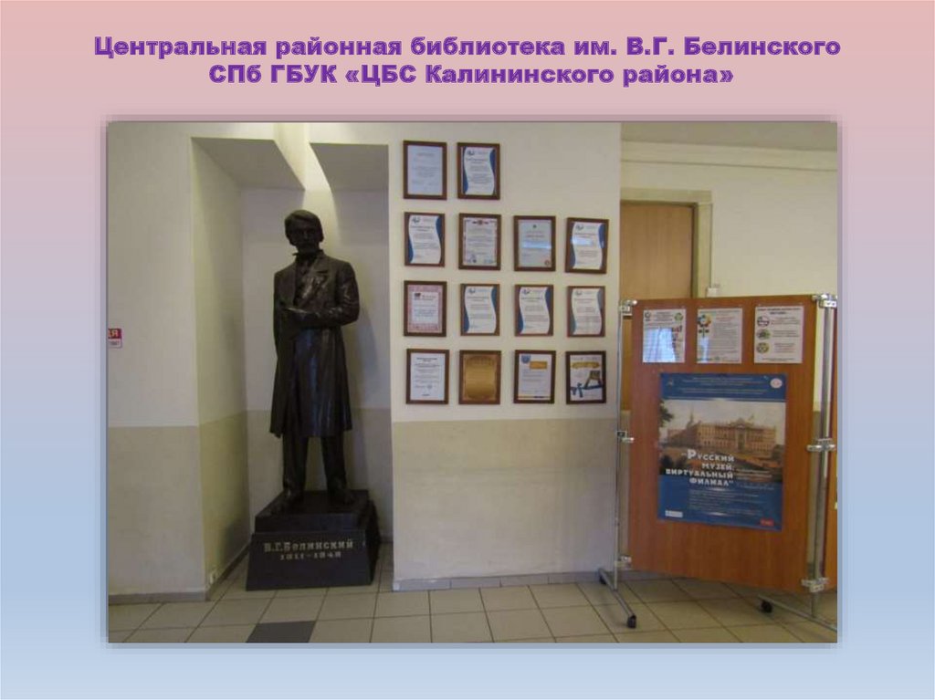 Центральная районная библиотека им. В.Г. БелинскогоСПб ГБУК «ЦБС Калининского района»