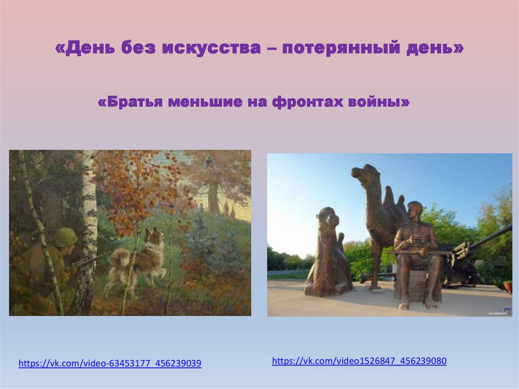 «День без искусства – потерянный день»«Братья меньшие на фронтах войны»