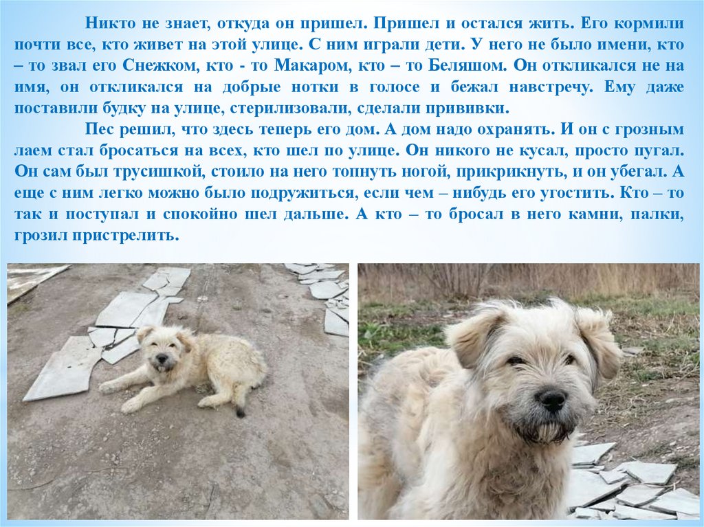 – то звал его Снежком, кто - то Макаром, кто – то Беляшом. Он откликался не на