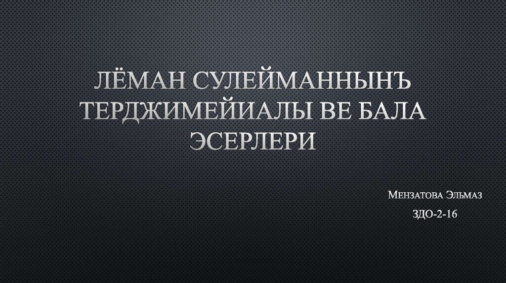 Лёман Сулейман онынъ терджимейиалы ве бала эсерлери