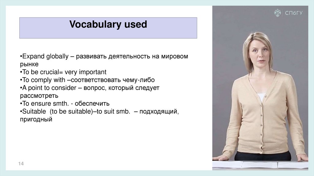 Vocabulary used•Expand globally – развивать деятельность на мировом