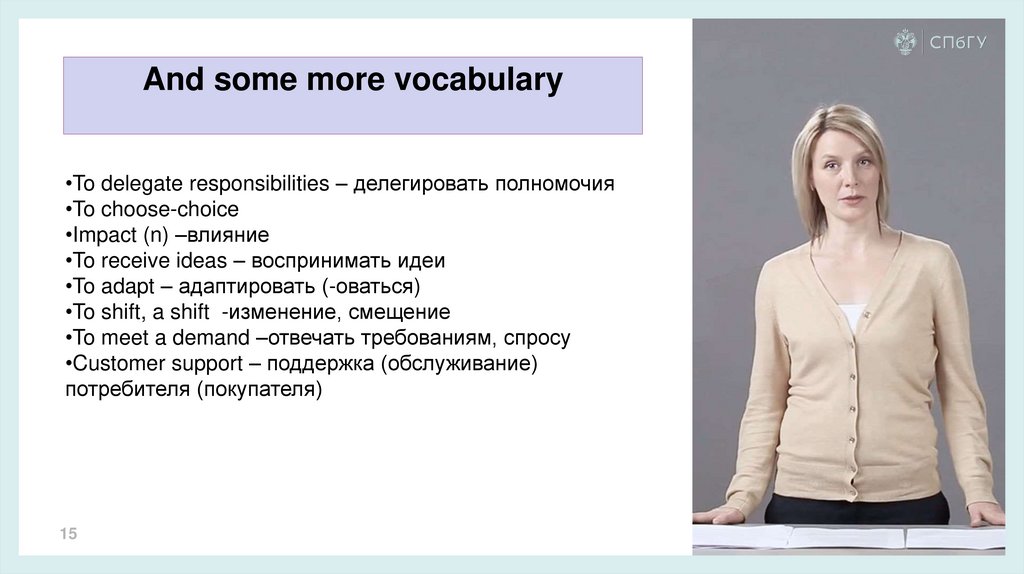And some more vocabulary•To delegate responsibilities – делегировать полномочия