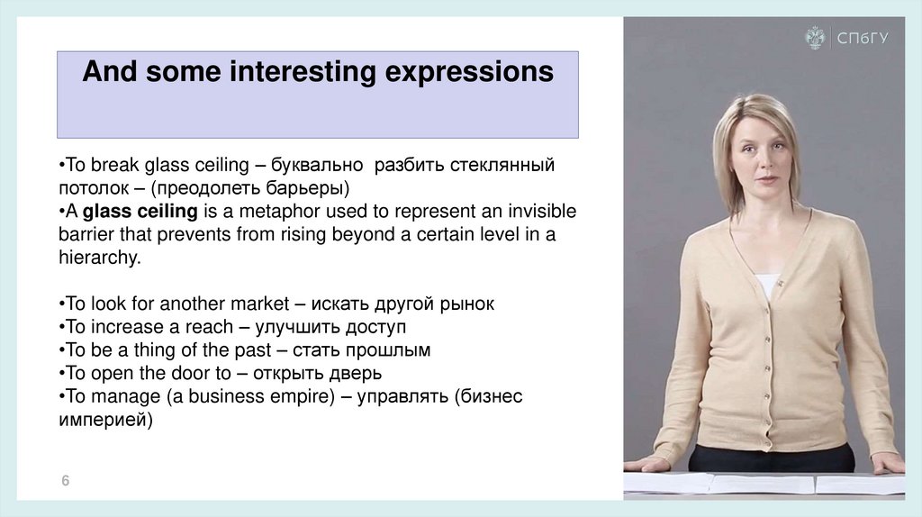 And some interesting expressions•To break glass ceiling – буквально разбить стеклянный