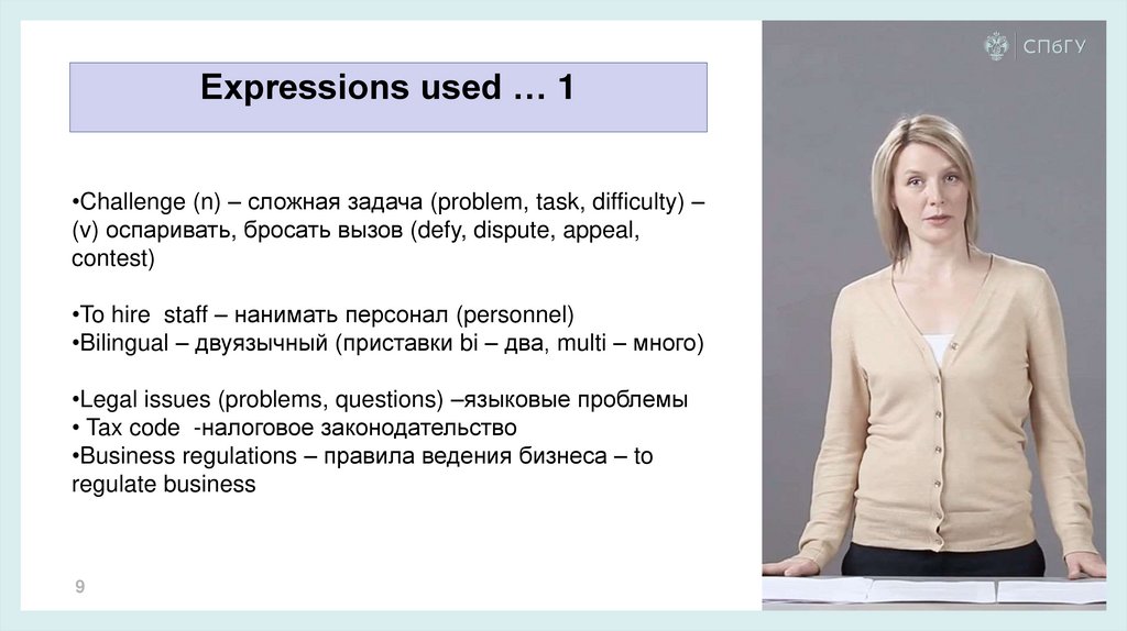 Expressions used … 1•Challenge (n) – сложная задача (problem, task, difficulty) –
