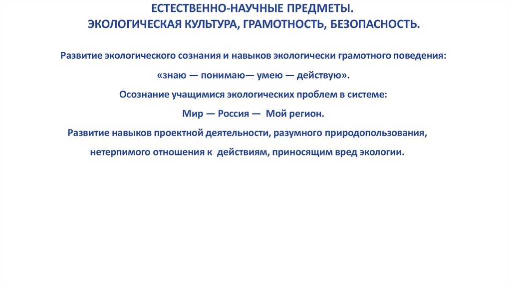 ЕСТЕСТВЕННО-НАУЧНЫЕ ПРЕДМЕТЫ.ЭКОЛОГИЧЕСКАЯ КУЛЬТУРА, ГРАМОТНОСТЬ, БЕЗОПАСНОСТЬ.