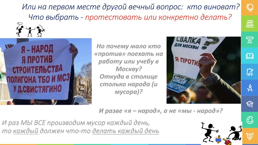 Или на первом месте другой вечный вопрос: кто виноват?Что выбрать - протестовать или конкретно делать?