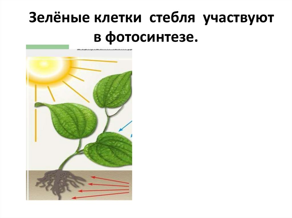Зелёные клетки стебля участвуютв фотосинтезе.
