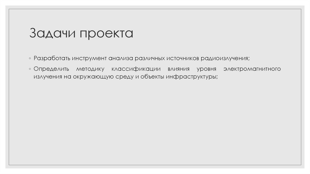 Задачи проекта◦ Разработать инструмент анализа различных источников радиоизлучения;