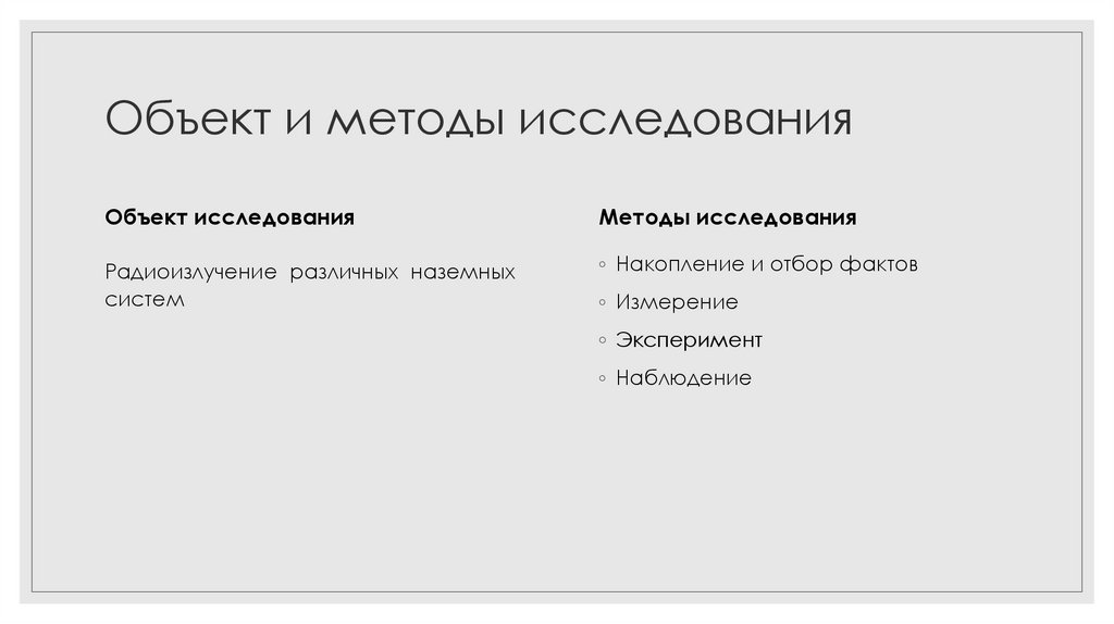 Объект и методы исследованияОбъект исследования