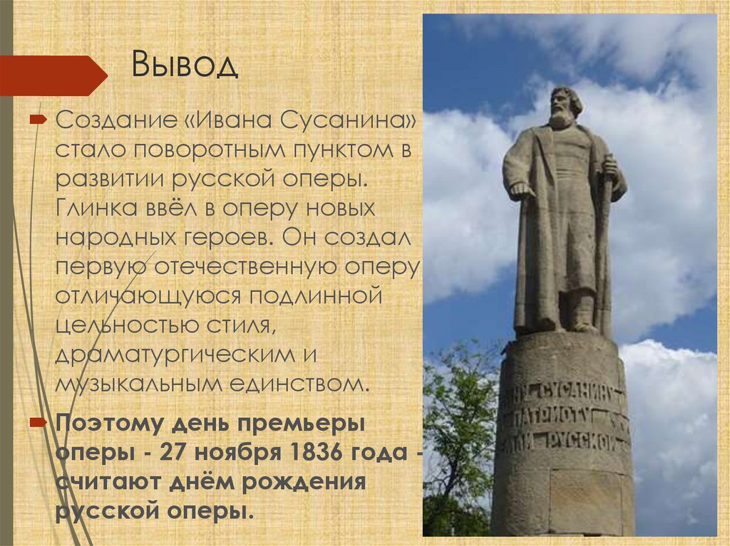 ВыводСоздание «Ивана Сусанина»