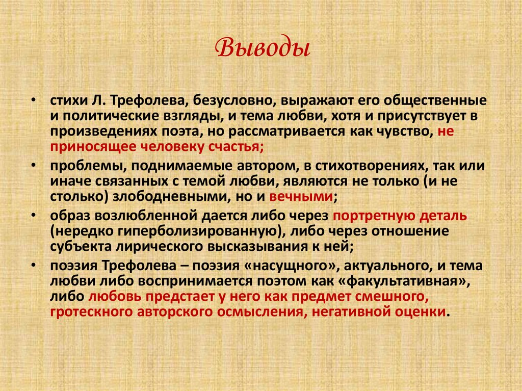 Выводы• стихи Л. Трефолева, безусловно, выражают его общественные