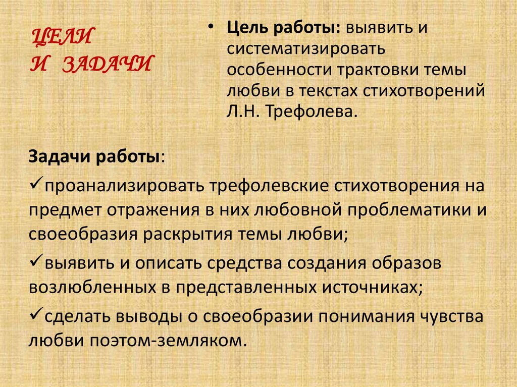 Л.Н.Трефолев о любви:анализ поэтики и проблематики