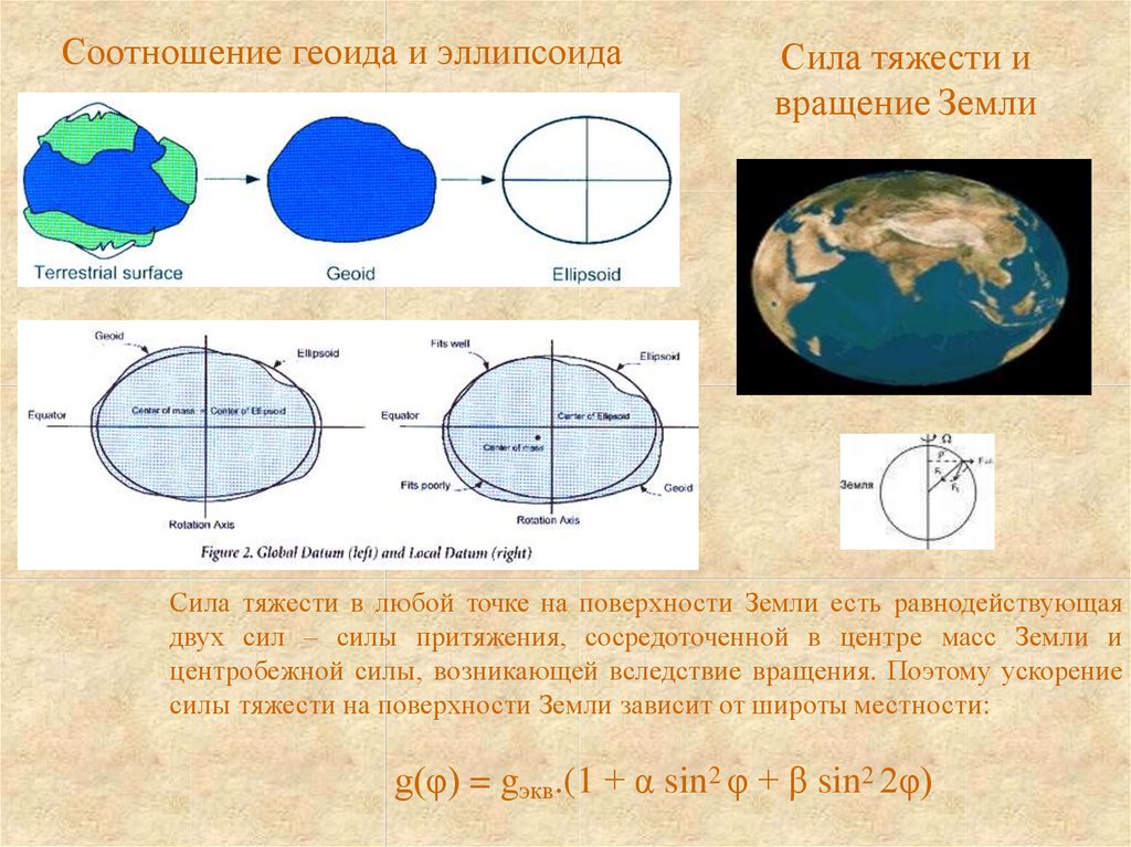 Сила тяжести в любой точке на поверхности Земли есть равнодействующая