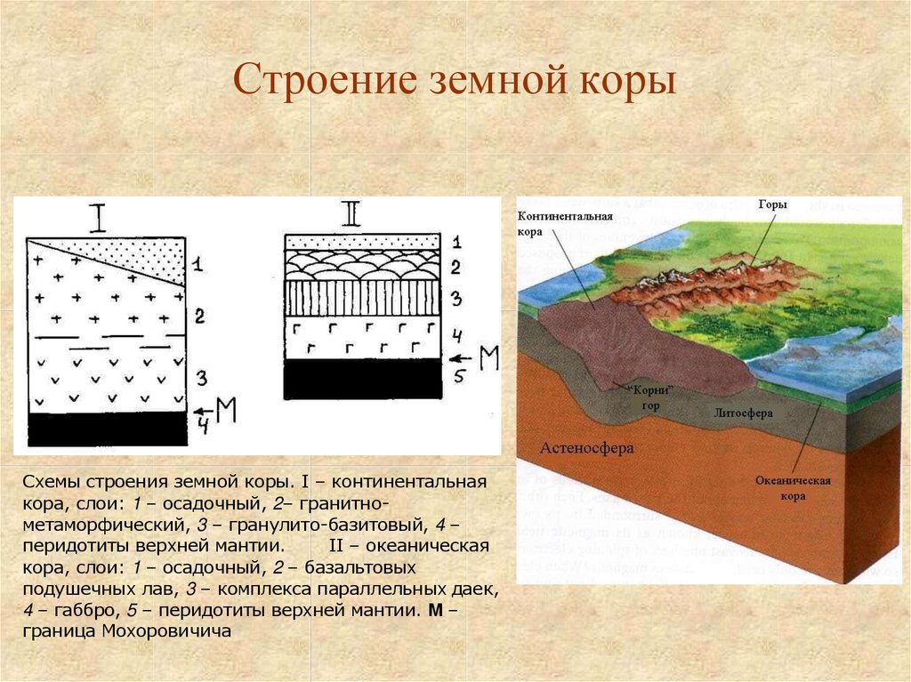 Строение земной корыСхемы строения земной коры. I – континентальная