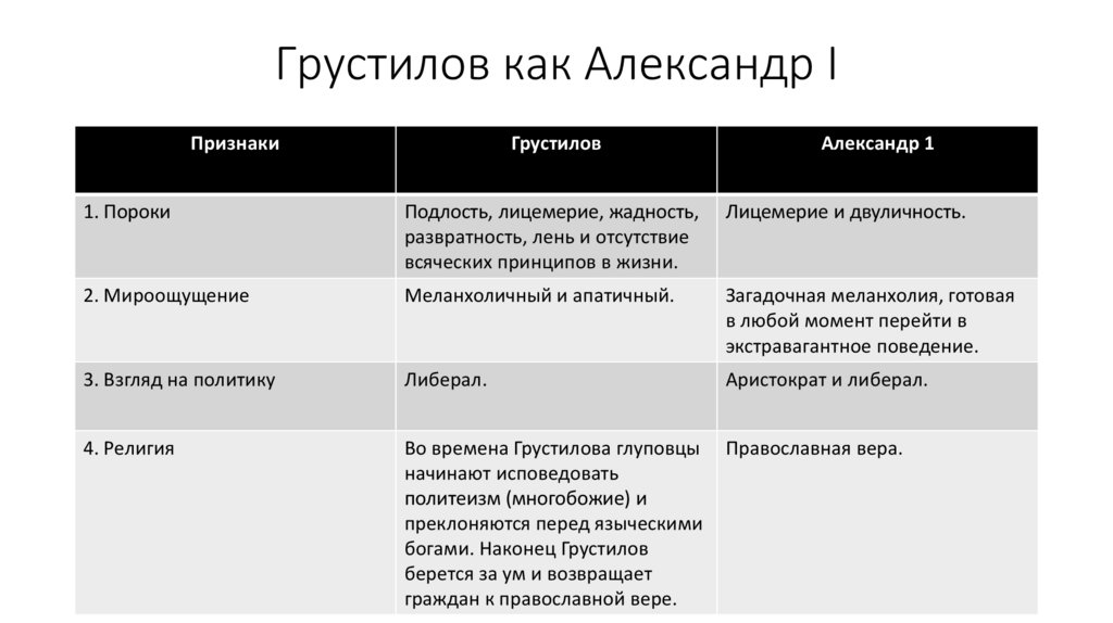 Грустилов как Александр IПризнаки