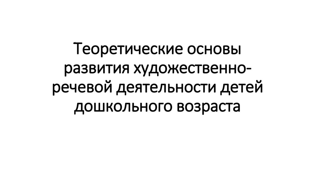 Теоретические основыразвития художественноречевой деятельности детей