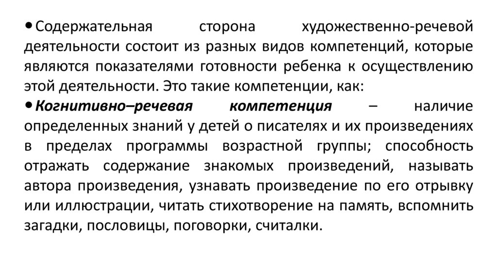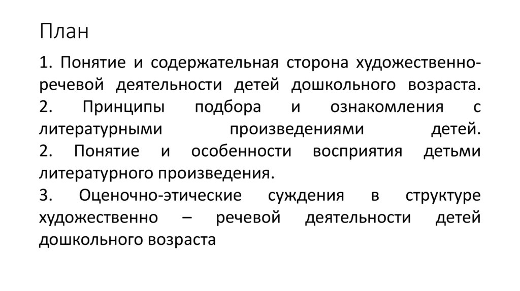 План1. Понятие и содержательная сторона художественноречевой деятельности детей дошкольного возраста.