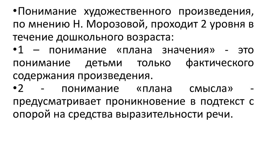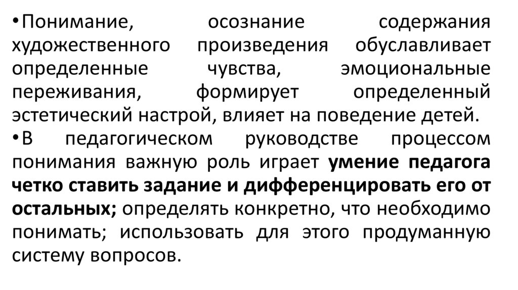 Осознание и понимание детьми содержания художественного