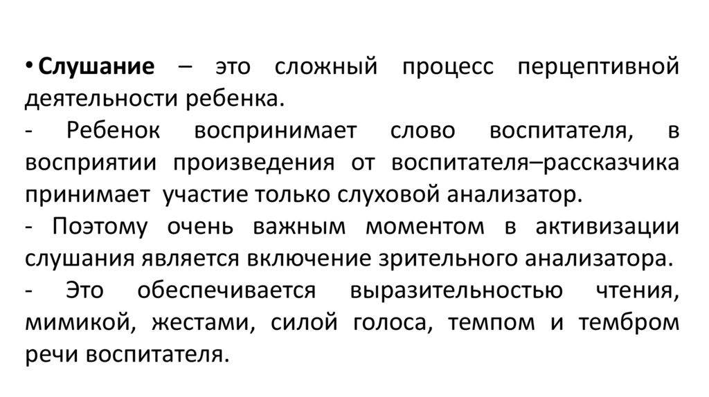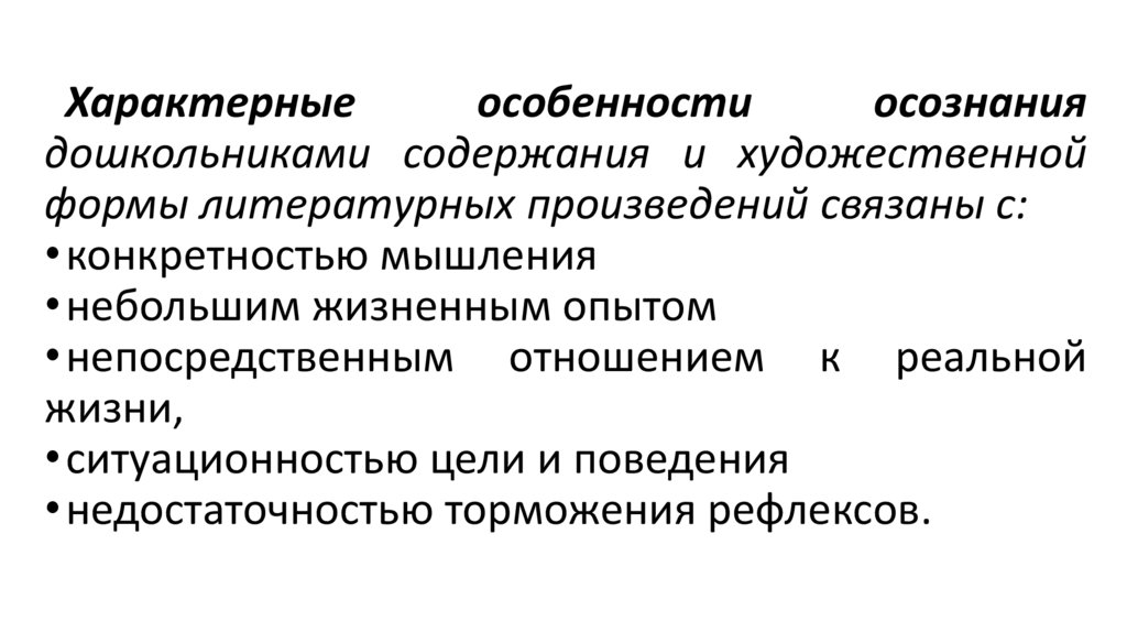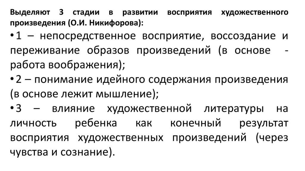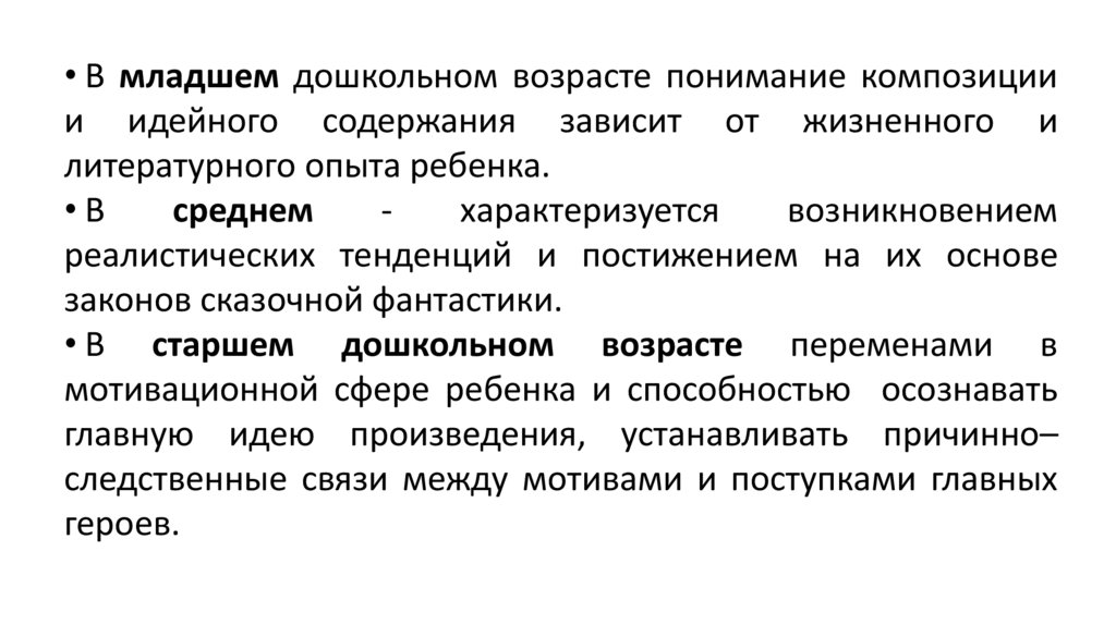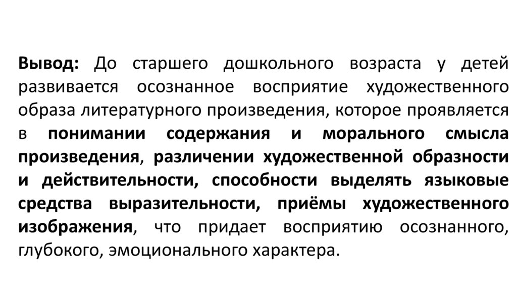 Вывод: До старшего дошкольного возраста у детейразвивается осознанное восприятие художественного
