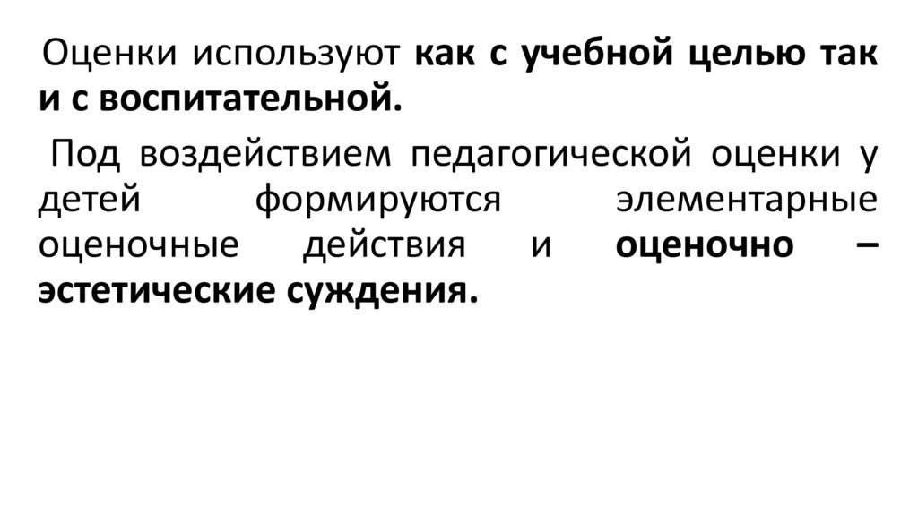Оценки используют как с учебной целью таки с воспитательной.