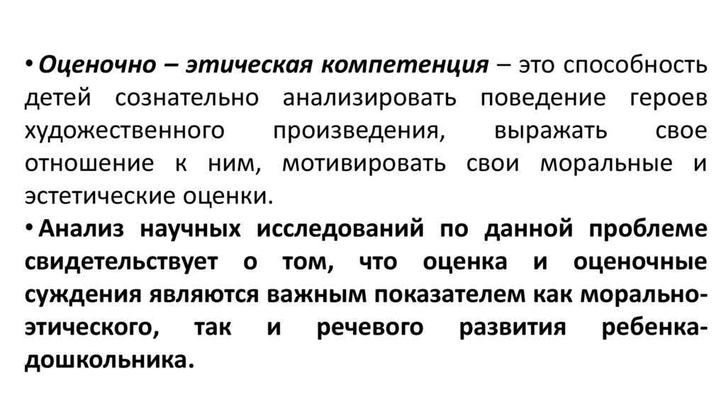 • Оценочно – этическая компетенция – это способностьдетей сознательно анализировать поведение героев