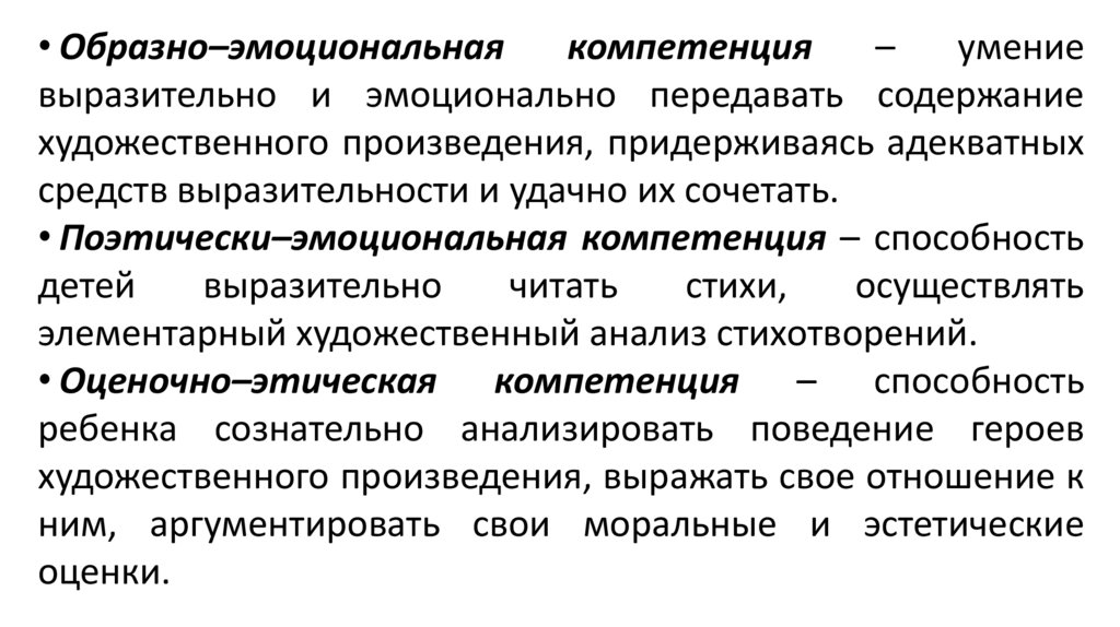 • Поэтически–эмоциональная компетенция – способность