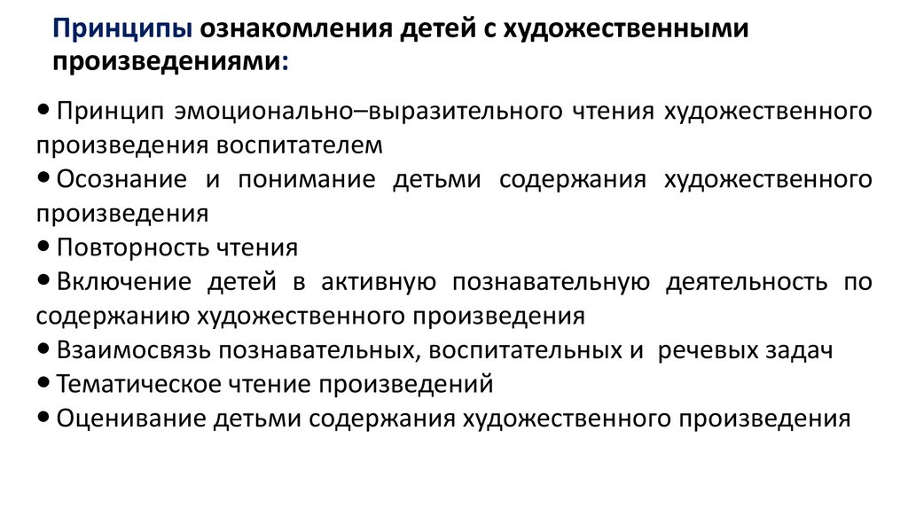Принципы ознакомления детей с художественнымипроизведениями:
