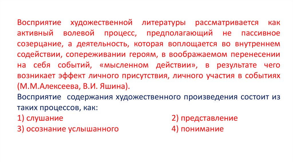 восприятие художественных произведений;