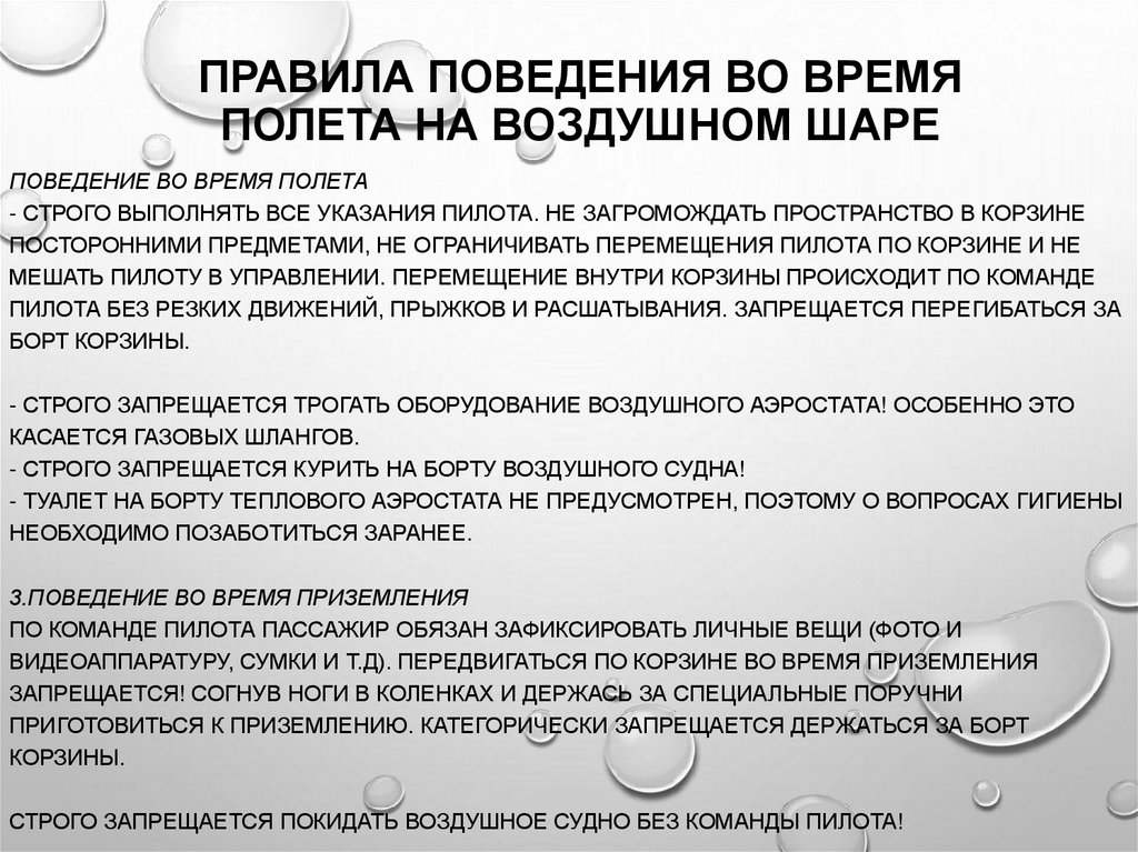 ПРАВИЛА ПОВЕДЕНИЯ ВО ВРЕМЯПОЛЕТА НА ВОЗДУШНОМ ШАРЕ