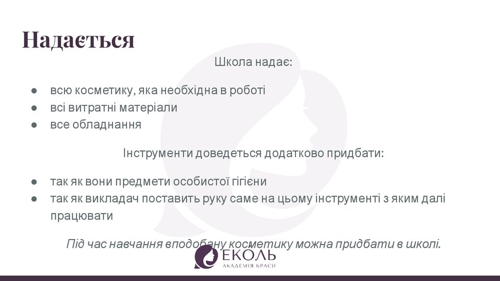 Під час навчання вподобану косметику можна придбати в школі.
