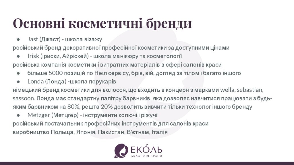 Основні косметичні бренди● Jast (Джаст) - школа візажу
