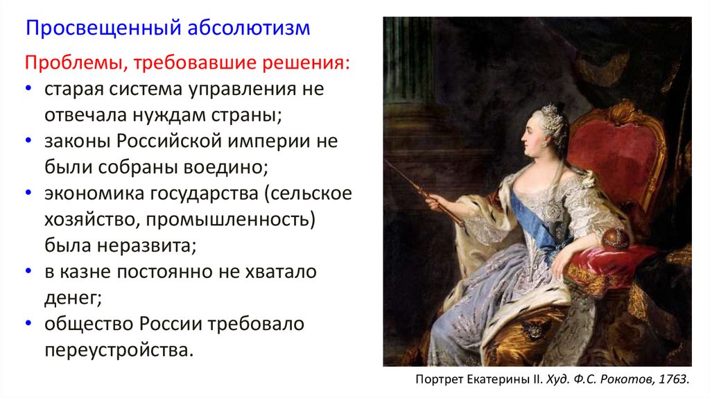 Просвещенный абсолютизмПроблемы, требовавшие решения: