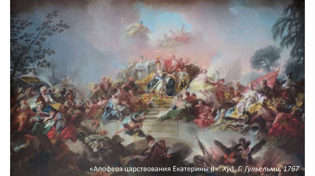 «Апофеоз царствования Екатерины II». Худ. Г. Гульельми, 176716.