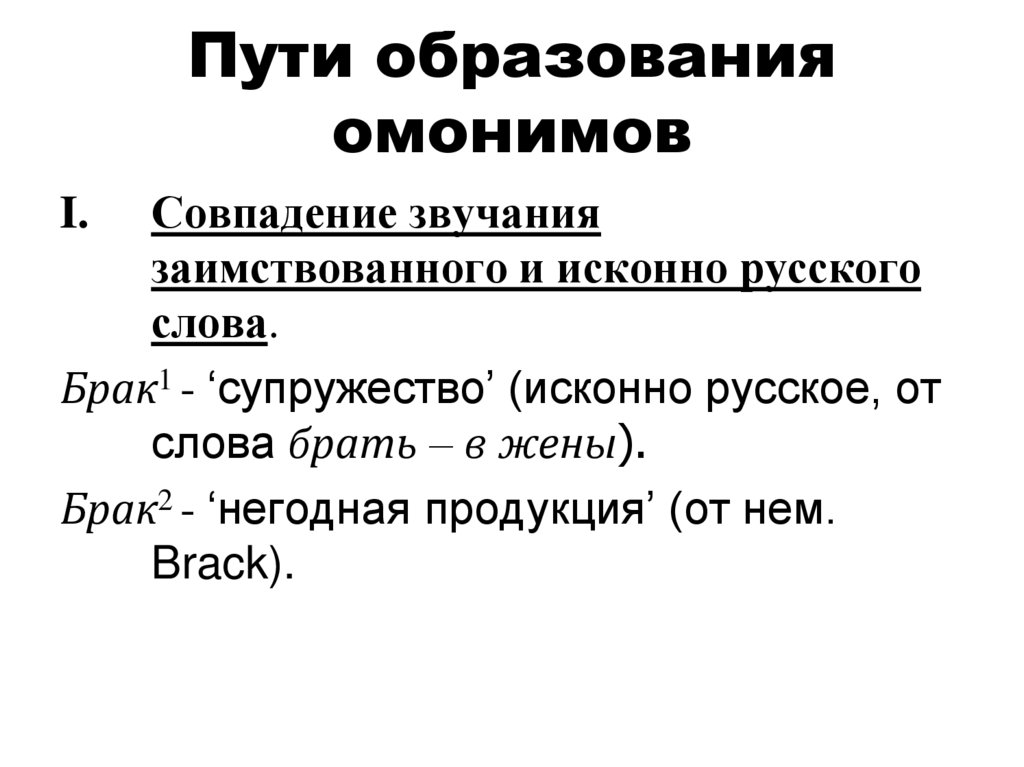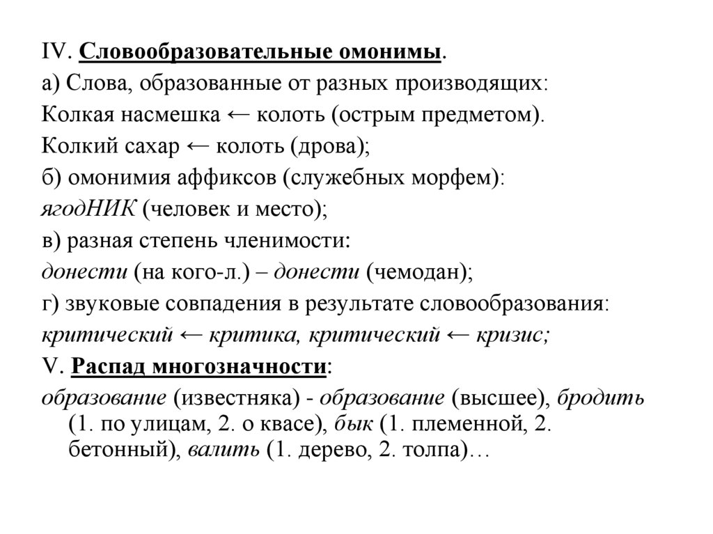 IV. Словообразовательные омонимы.а) Слова, образованные от разных производящих: