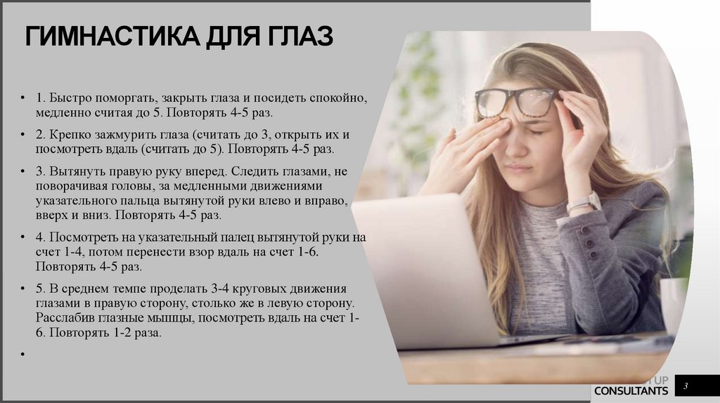 • 2. Крепко зажмурить глаза (считать до 3, открыть их и