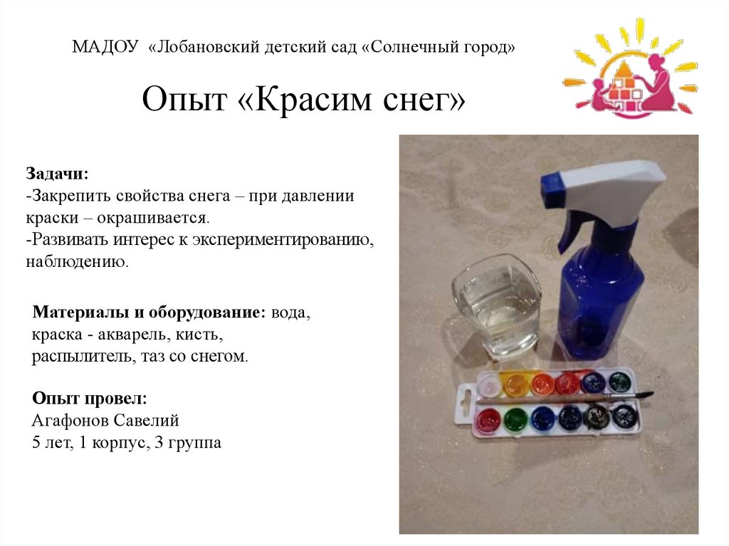 МАДОУ «Лобановский детский сад «Солнечный город»Опыт «Красим снег»