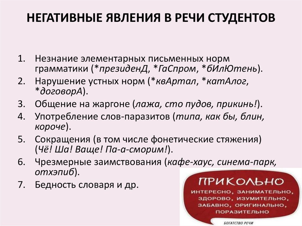НЕГАТИВНЫЕ ЯВЛЕНИЯ В РЕЧИ СТУДЕНТОВ1. Незнание элементарных письменных норм