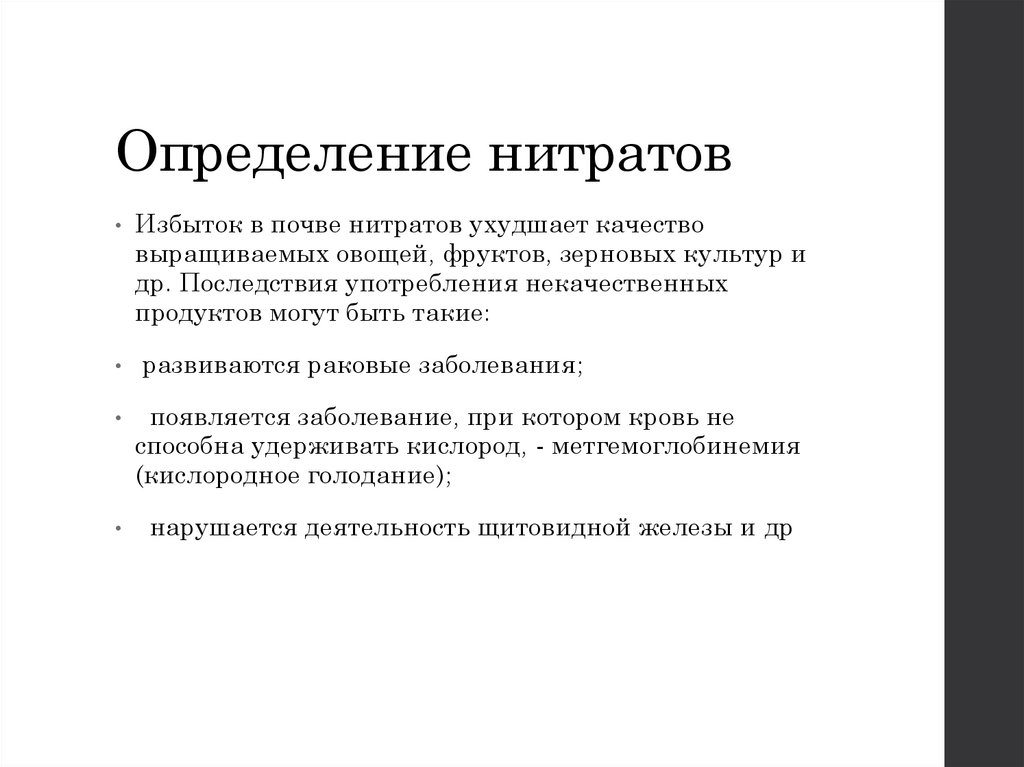 Определение нитратовИзбыток в почве нитратов ухудшает качество
