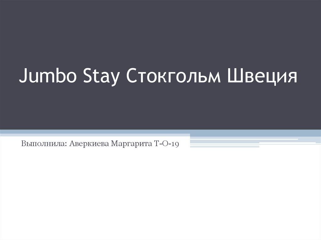 Jumbo Stay Стокгольм ШвецияВыполнила: Аверкиева Маргарита Т-О-19