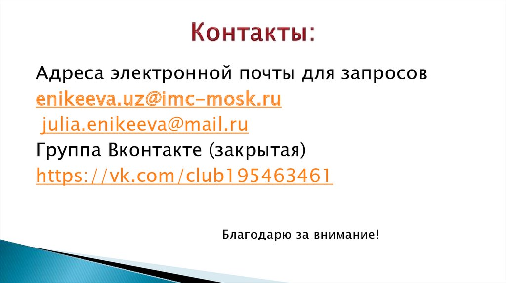 Адреса электронной почты для запросовenikeeva.uz@imc-mosk.ru