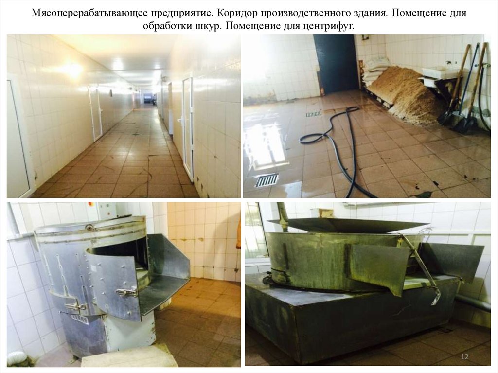 Мясоперерабатывающее предприятие. Коридор производственного здания. Помещение дляобработки шкур. Помещение для центрифуг.