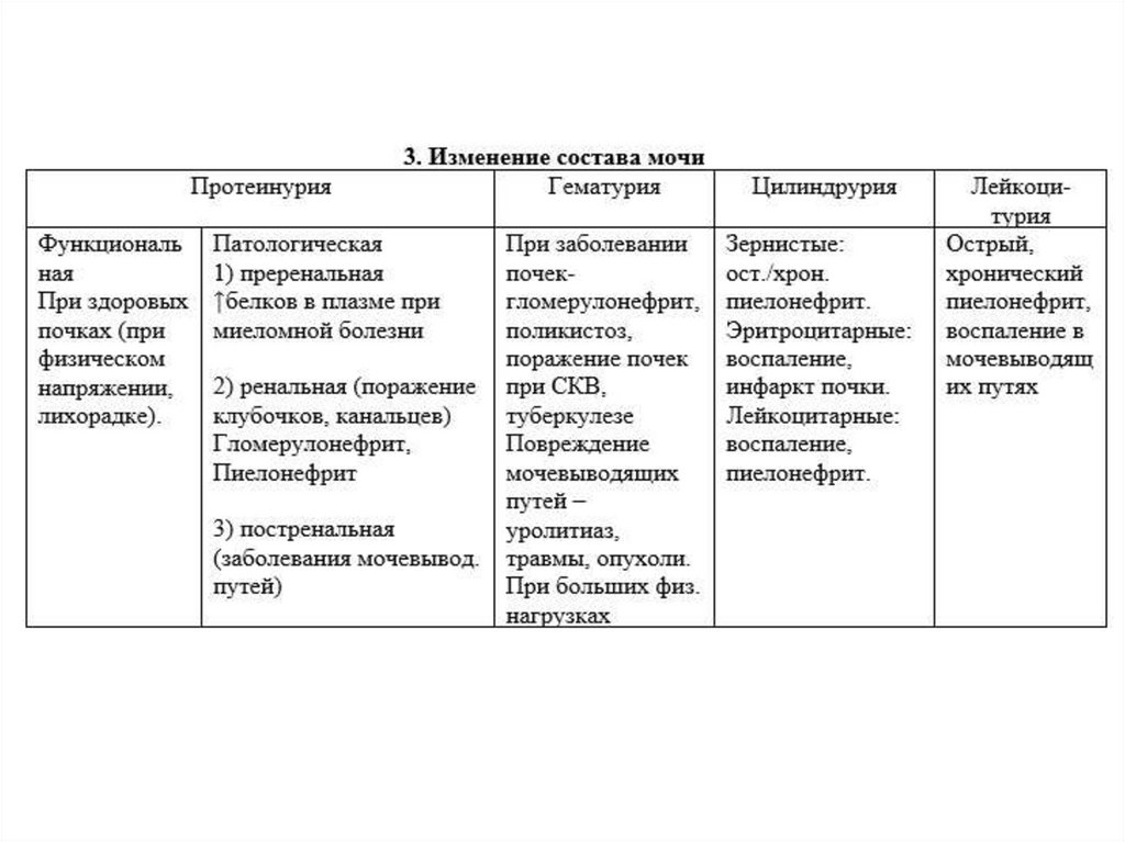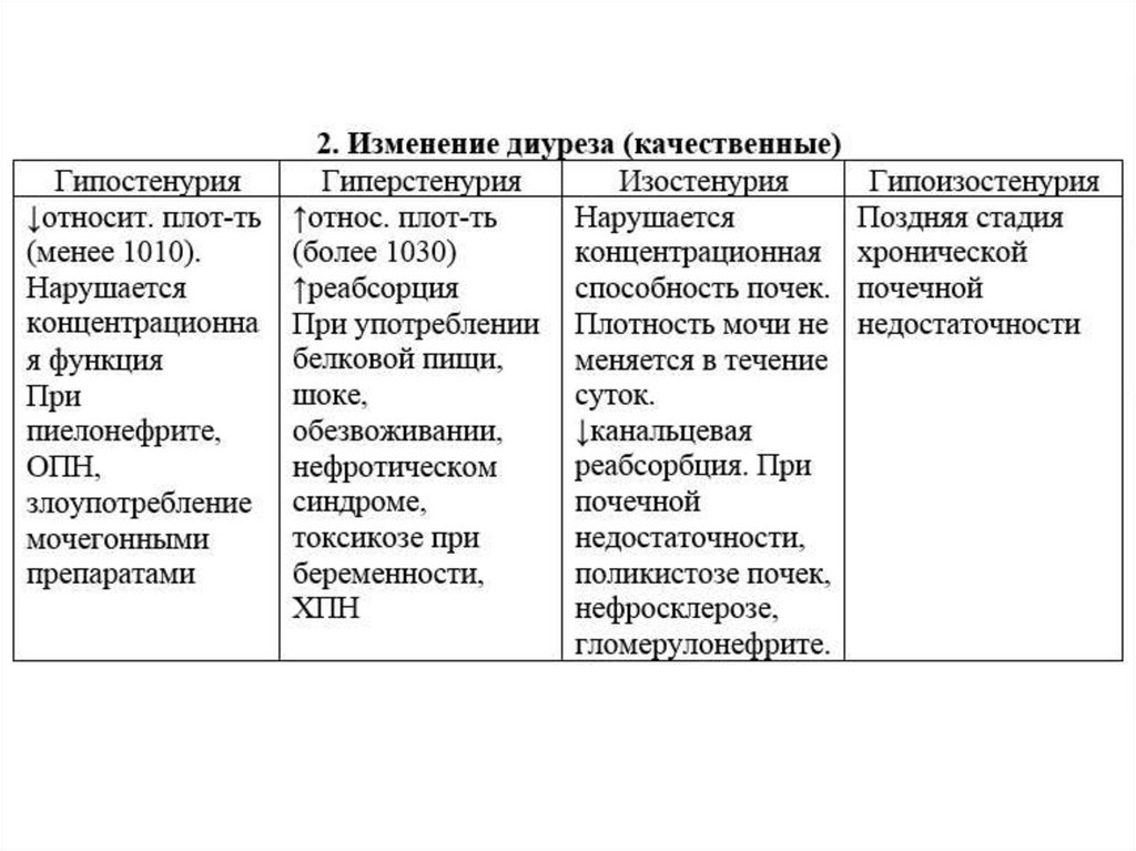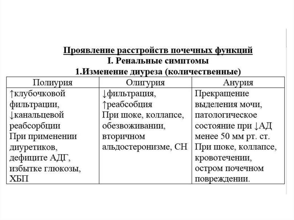 Гиперазотемия: ↑ креатинин, мочевина в крови; нарушение