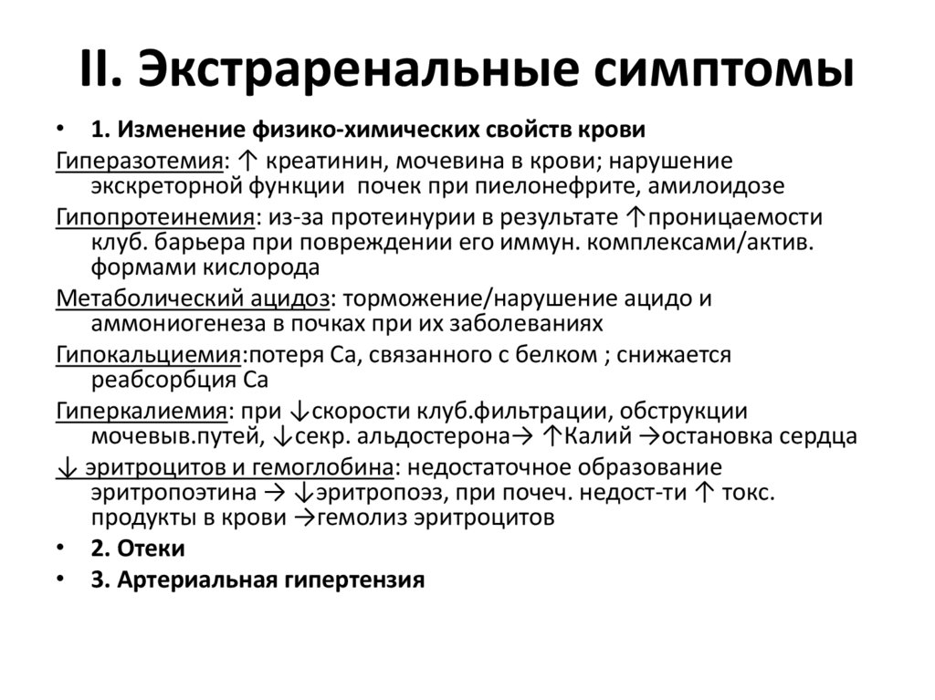 II. Экстраренальные симптомы• 1. Изменение физико-химических свойств крови