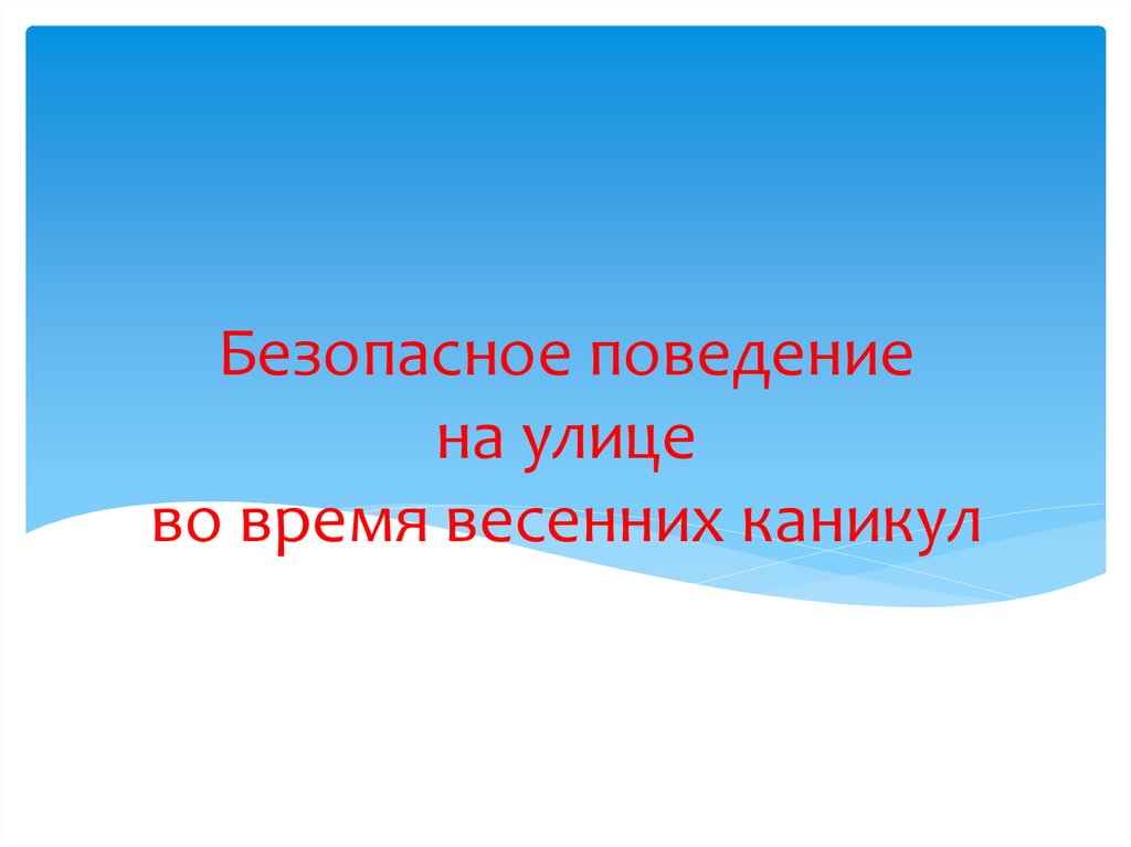 Безопасные каникулы. Безопасное поведение на улицах и дорогах
