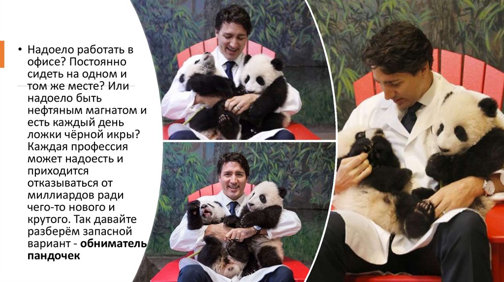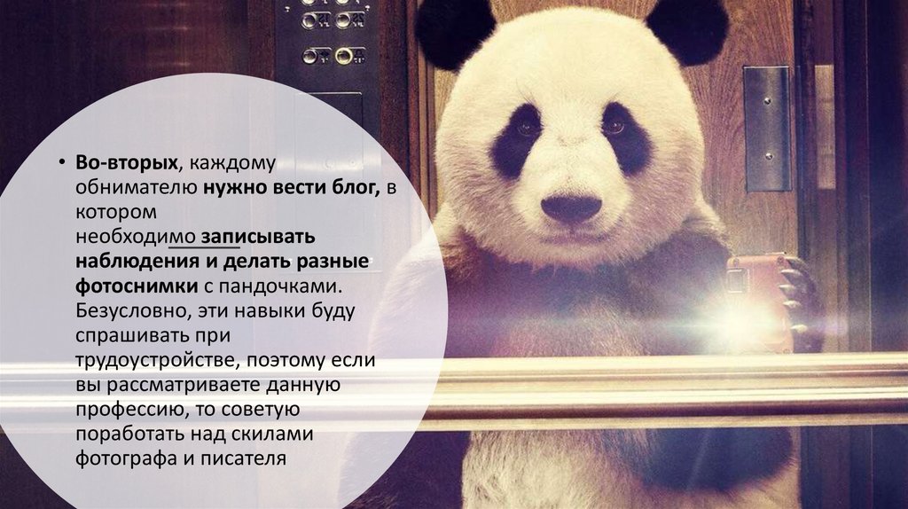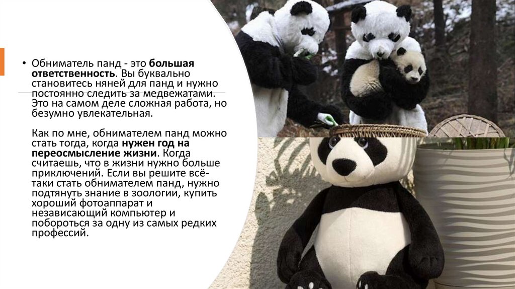 • Обниматель панд - это большаяответственность. Вы буквально
