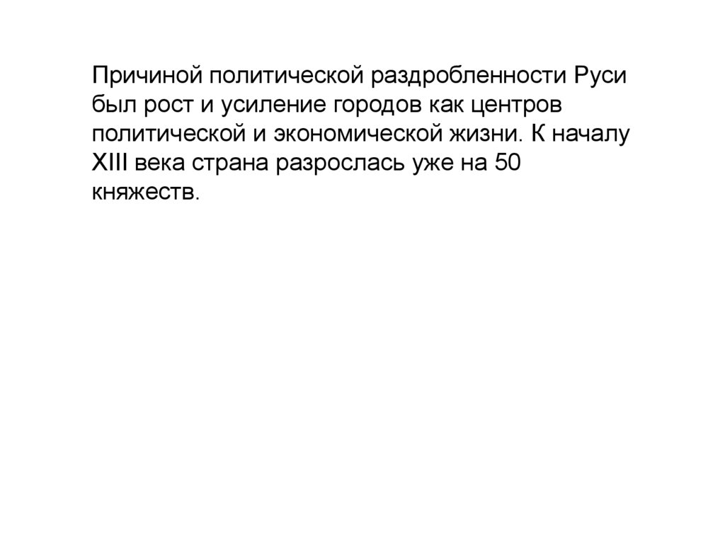 Причиной политической раздробленности Русибыл рост и усиление городов как центров