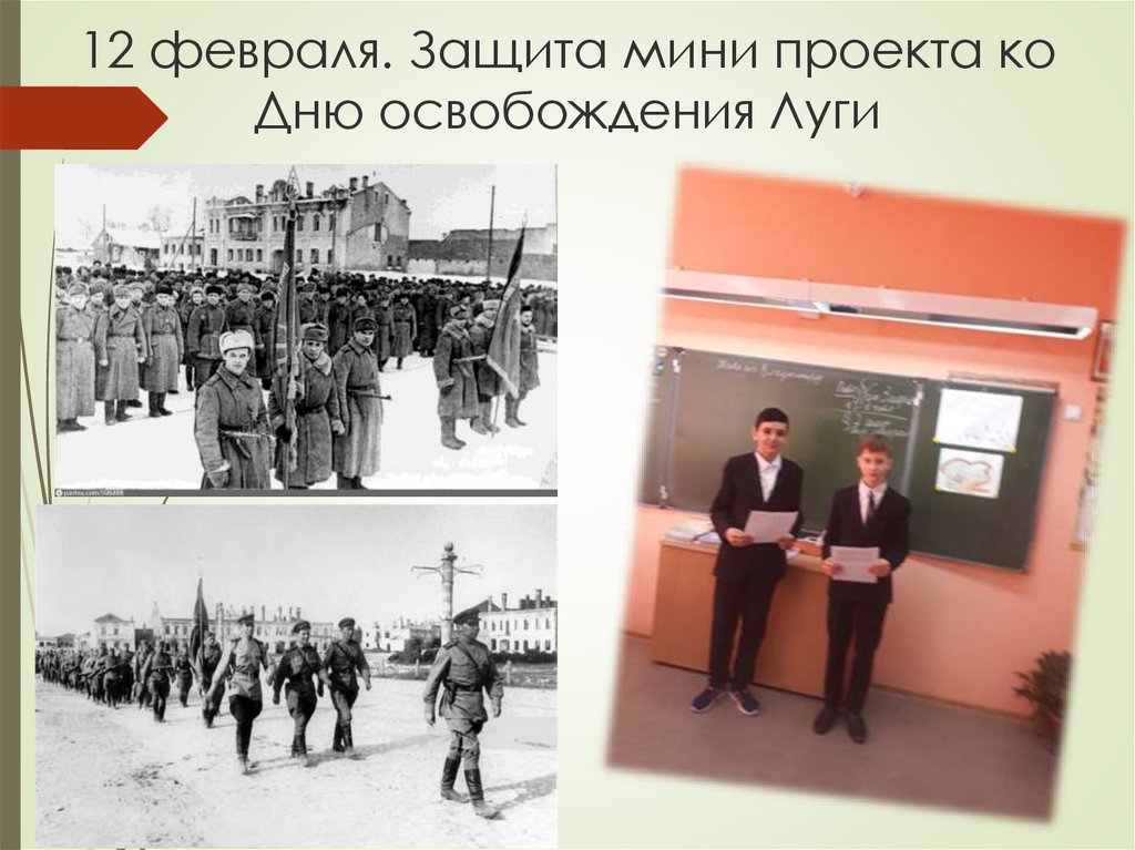 12 февраля. Защита мини проекта коДню освобождения Луги