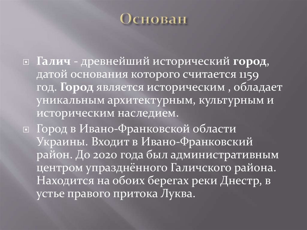Галич - древнейший исторический город,датой основания которого считается 1159
