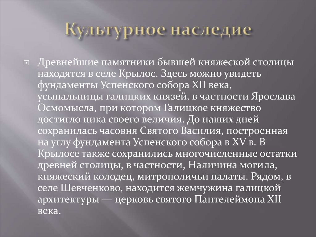 Древнейшие памятники бывшей княжеской столицынаходятся в селе Крылос. Здесь можно увидеть