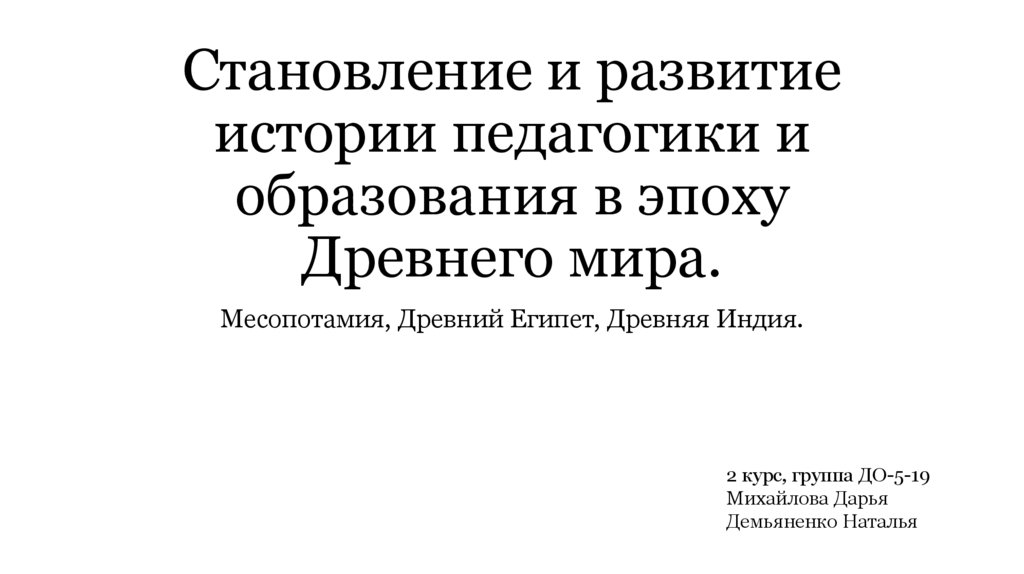 Становление и развитие истории педагогики и образования в эпоху Древнего мира